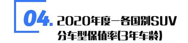 可见在使用5年以后,中型SUV阵营中欧美系产品的保值率开始追上日系品牌。
