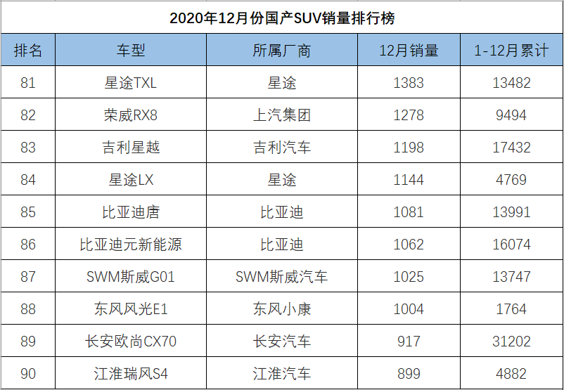奇瑞瑞虎8在12月份售出22076辆排名第四,作为一款中型SUV,奇瑞瑞虎8在价格方面具备先天优势,而且自从2019年改款之后,它就如同开挂一般,销量节节攀升,原因在于新车不仅内饰一改以往奇瑞老气横秋的样子,变得非常时尚有科技感,同时又新加入了1.6T动力,性能有了很大提升,去年10月份,定位高于瑞虎8的瑞虎8 PLUS上市,再次提升了整体的竞争力,因此这台车目前已经彻底跻身一线行列。奇瑞旗下的另外一员实力派选手捷途X70在去年表现一直比较低迷,不过到了12月份它再次冲高,一举售出19311辆排在了榜单第八名,而奇瑞瑞虎7在12月份也有10069辆进账。